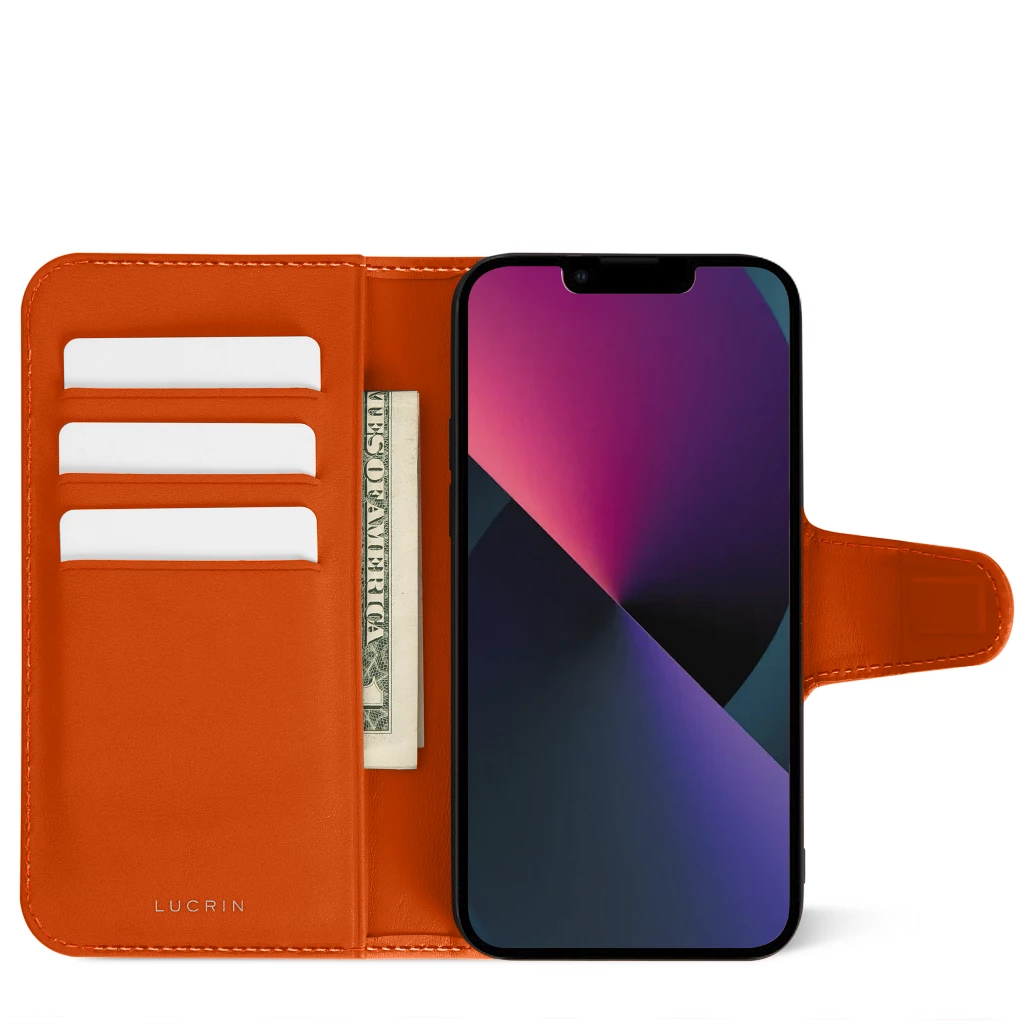 iPhone 13 mini 奢華錢包式保護套 橘色  - 光滑皮革