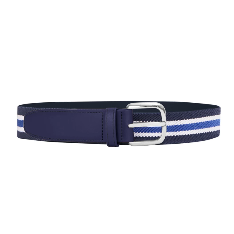 3.5 cm 藍色條紋皮革棉質腰帶