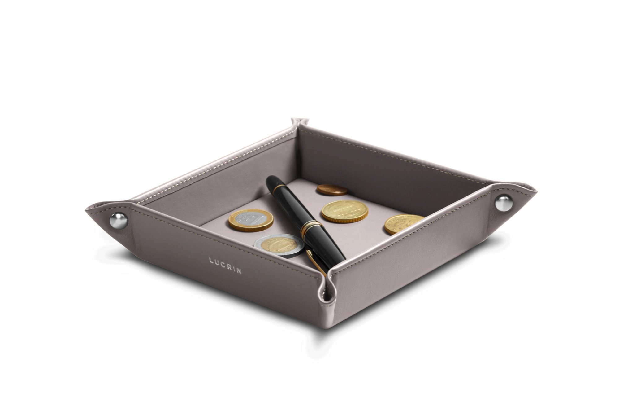 Lucrin 推出这款小号杂物托盘。这款装饰品,采用全天然皮革,饰面无懈可击,做工精良,格外实用。这款方形杂物托盘可放置在家中或办公室任何位置,收纳并保存口袋中的物件。四角用 4 颗金属铆钉固定。